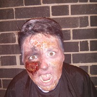 A&B used with puss to create a textured burned flesh with a gelatin piece below one eye.